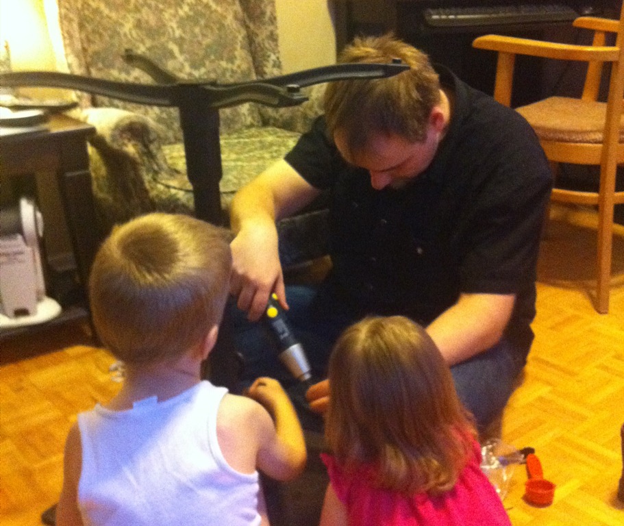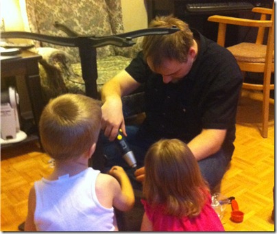POD: Helping Daddy Posted on March 27, 2011by mrjCategories:Family, Fatherhood, Picture of the Day Today the kids help me fix Mommies Laptop table. To be fair fix is a strong word. We were just tightening up some of the screws to make it more stable. Still it was great to have the help. Share this: Click to share on Facebook (Opens in new window) Facebook Click to share on X (Opens in new window) X Like this:Like Loading... Related mrj www.geekwithkids.com