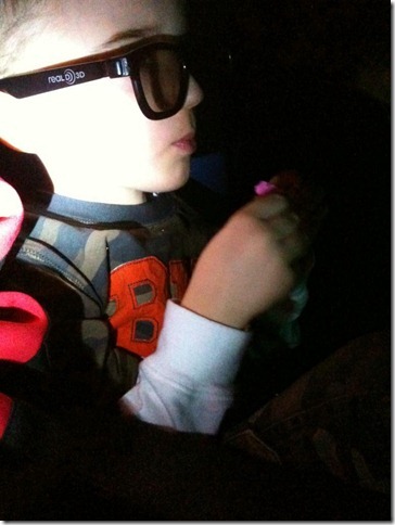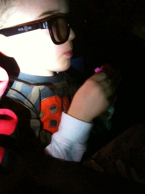 Today Jacob headed to the theatre with Nana and Papa to see Mars Needs Moms in 3D. He was very excited about the going to the theater and to listen to him talk about it when he got home he wasn’t disappointed. The only downside was that little Violet wanted to go, but she’s still a little young. They did pick up her own Kinder Egg so that she got a treat too.
