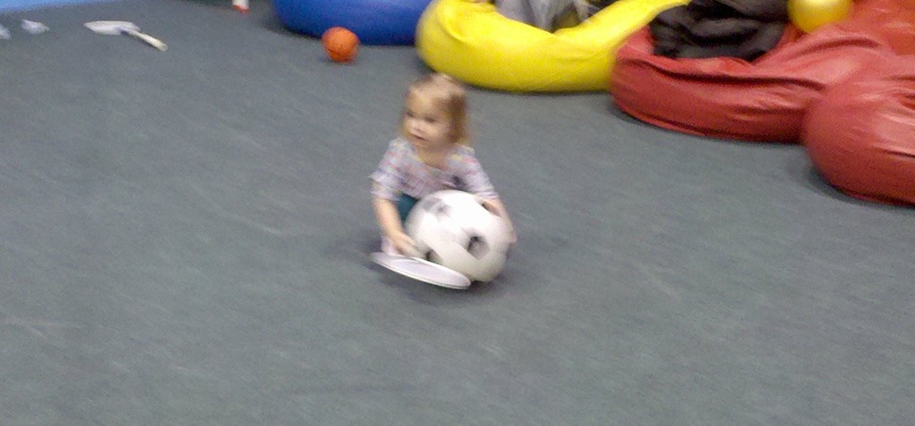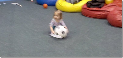 Our bonus pictures today are Jacob walking over a rope and Violet playing with a soccer ball: