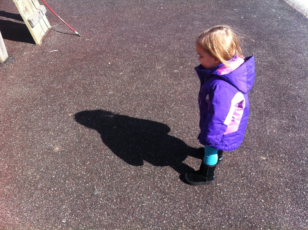 Today while waiting for Jacob after school, Violet met a new friend. She met her shadow. It was very cute to watch her chase after it. Of course I wouldn’t have been able to see it if Melissa hadn’t take along our flip camera and captured the moment.