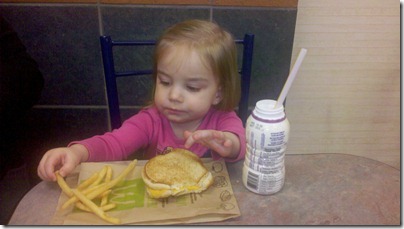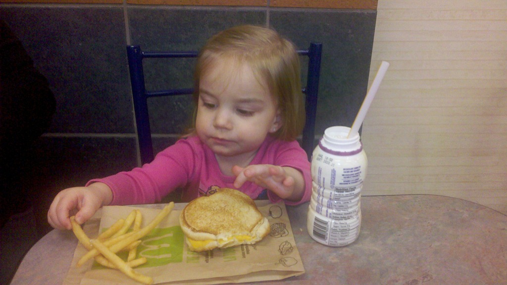 Today while Jacob was having lunch with his Nan before school, Melissa, Violet and I headed out to get some lunch for ourselves and do a bit of shopping. Today Violet insisted on sitting on chair like mommy and daddy, so we pushed the high chair away and set her up at the table. It was just another moment of Violet showing me how she’s growing up. The day was filled with them, from her wearing underwear out and going to pee on the toilet. Of course however old she gets she’ll always be my baby girl.