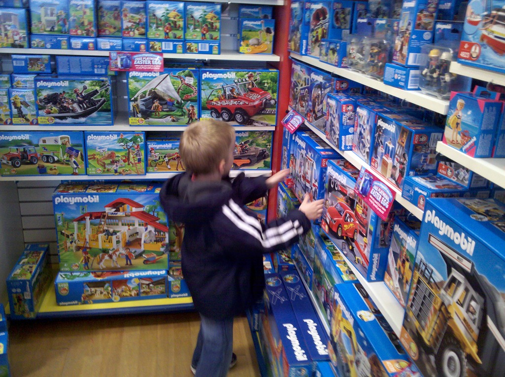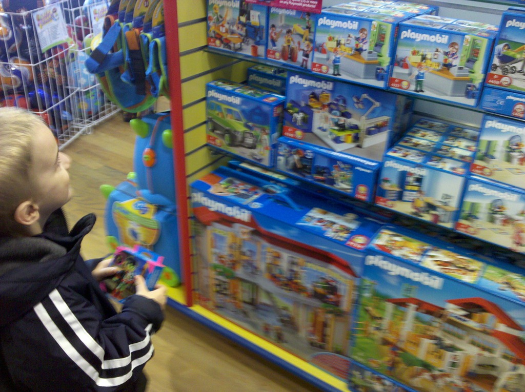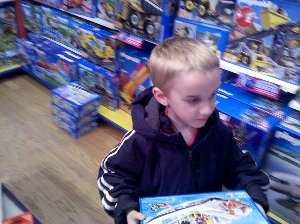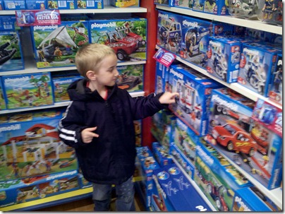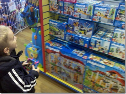 Today after school I took Jacob to Mastermind Toys to pick out his reward for going to bed on time without a fight for 14 nights in a row. He was allowed to choose one playmobil that was under $20. It was not an easy decision for him. But after much debate and explaining which were in his budget, he finally choice the Holiday Compact Play Set.