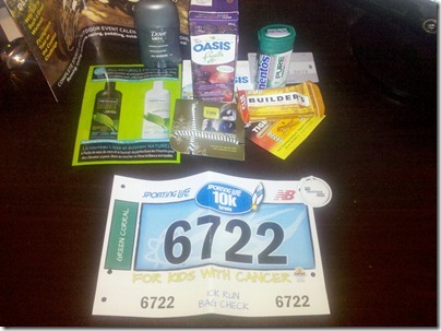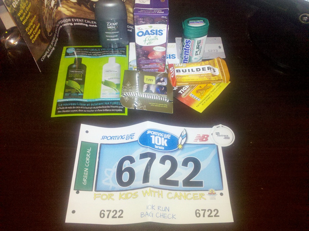 I spent last night trying to figure out how I would get up to the sporting life at Young and Eglington(Actually quite a bit north of Eglington). Today the stars aligned and I found myself heading up to the area for work. So I skipped lunch and picked up my race kit for Sunday’s Sporting Life 10k. No shirt this time, it seems the delivery has been delayed, we’ll pick them up after the race on Sunday. It’s quite exiting to be preparing for my second race. Of course the big one is in 2 weeks when I run the Half Marathon.