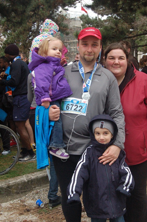 Today on the eve of the anniversary of my first run I took part in my second race. The distance was double my last race, the Harry Rosen 5k Spring Run-Off. Today’s race was the Sporting Life 10k. My Time was 57:18.3, only .4 seconds behind Dan’s time of 57:17.9. The running felt great, our pace was 5 Minutes and 44 Seconds a km. Making it the fast I’ve ever run for a sustained amount of time. Now I’ve got 2 weeks to prepare to more than double todays race distance. On May 15th I run the Mississauga Half-Marathon. You can pledge your support here. I’ll be writing more about it in the coming days.