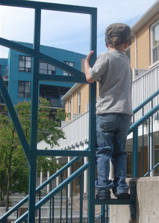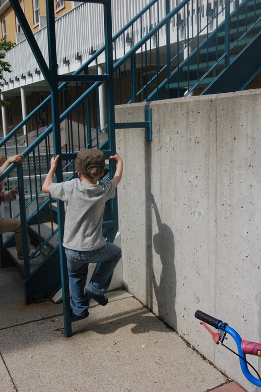 The last couple of Days Jacob has taken to climbing on to a cement block in the playground near our house. So today Melissa took out the good camera and captured Jacob doing the climb.