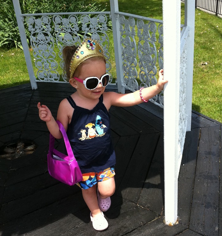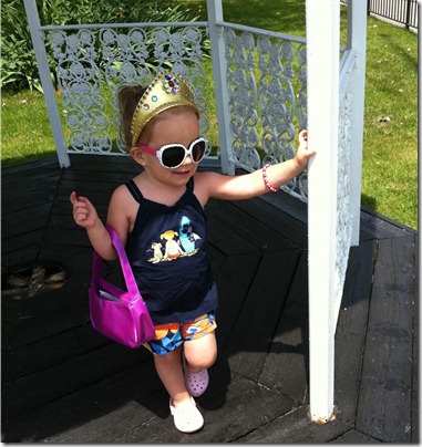 Today while Jacob was in school, Melissa and Violet headed out on a trip to some of the local stores. Of course before heading out Violet needed her Tangled crown, sun glasses, bracelet and of course her purse. The pictures Melissa took are just so sweet.