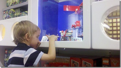 Today the family headed out to Sherway to pick up a few things. While there Jacob and I found ourselves in the new Lego Store. Jacob was quite excited to be there, though apart from the Cars sets he was most interested in building his own Lego men. Perhaps we’ve found Jacob’s next obsession interest.