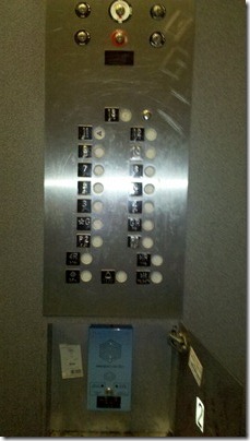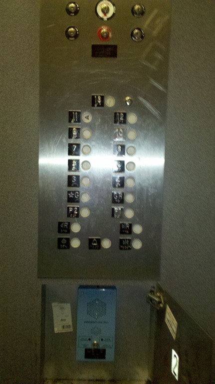 Today I had a little surprise as I was heading out to pick Melissa up from work. It seems that the Elevator that was supposed to be fixed this morning, wasn’t. I pressed the button and it started to go down but then stopped. I waited it didn’t move. Pressed all the buttons and still it didn’t move. So I opened the little door and called for help. It only took 20 minutes for the on-call person to come and free me. Still I think I’ll be taking the stairs for the next few days.