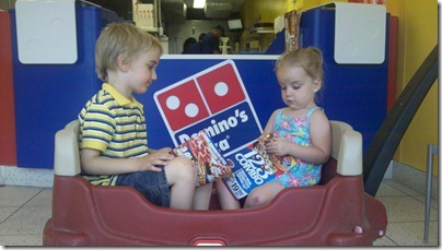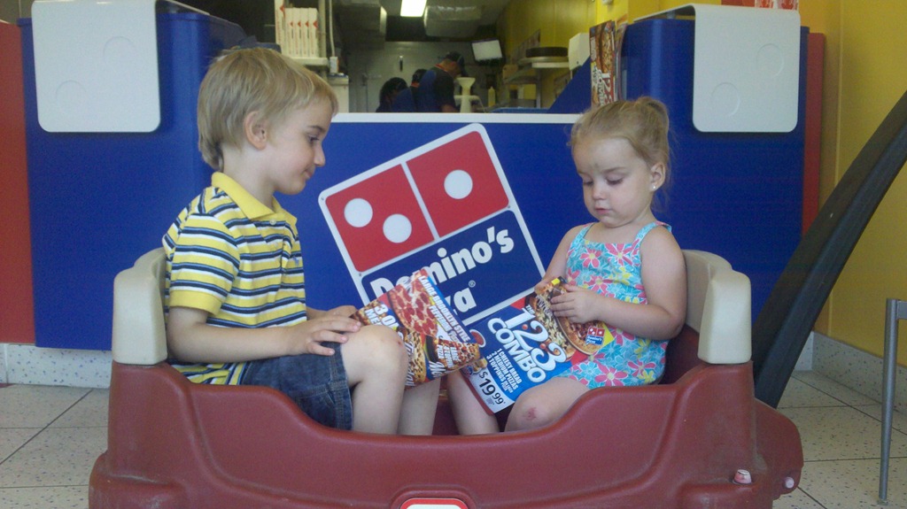 POD: Pizza Night Posted on July 3, 2011by mrjCategories:Family, Fatherhood, Picture of the Day Today we wrapped up the long weekend with Mommy a little under the weather, so to help out, I packed the kids up in the wagon and headed to the local Domino’s to get dinner. Got to love the $5 walk-in pizza deal. Share this: Click to share on Facebook (Opens in new window) Facebook Click to share on X (Opens in new window) X Like this:Like Loading... Related mrj www.geekwithkids.com