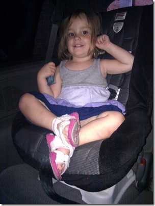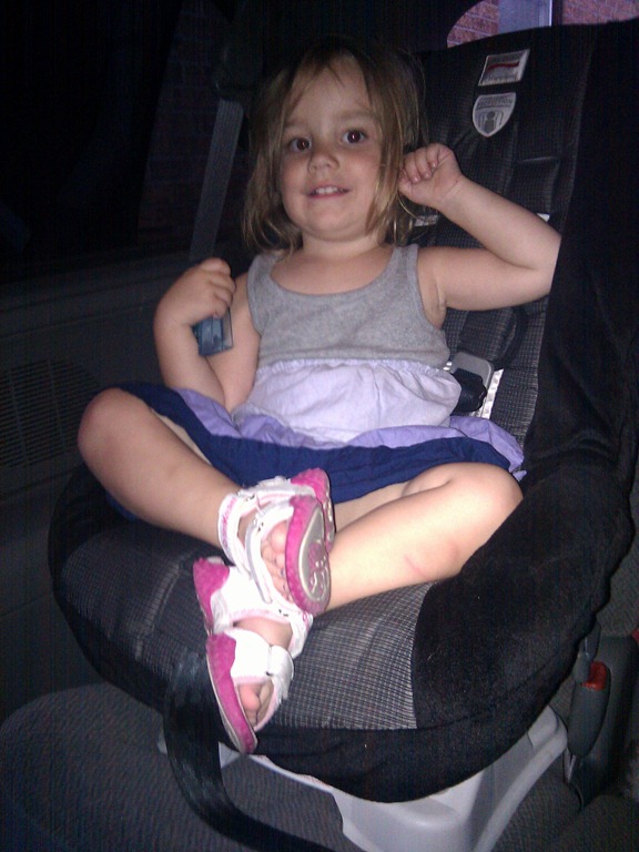 Today we strapped Violets car seat into Nana and Papa’s van in preparation for our family camping trip next week. We did it a week early because we wanted to get it in securely and on a more up-right position then it has been in the van. We really want our little girl to be comfortable during the 5 hour drive.