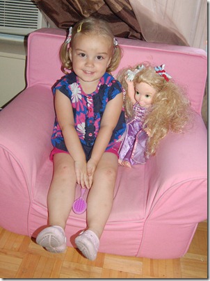 POD: Violet and Rapunzel Posted on July 6, 2011by mrjCategories:Family, Fatherhood, Picture of the Day Today I came home to find Violet with her hair done up with bows. She wasted no time to showing me that her Rapunzel dolls here was done up too. So I set them up in her chair and took todays picture of the day. Share this: Click to share on Facebook (Opens in new window) Facebook Click to share on X (Opens in new window) X Like this:Like Loading... Related mrj www.geekwithkids.com