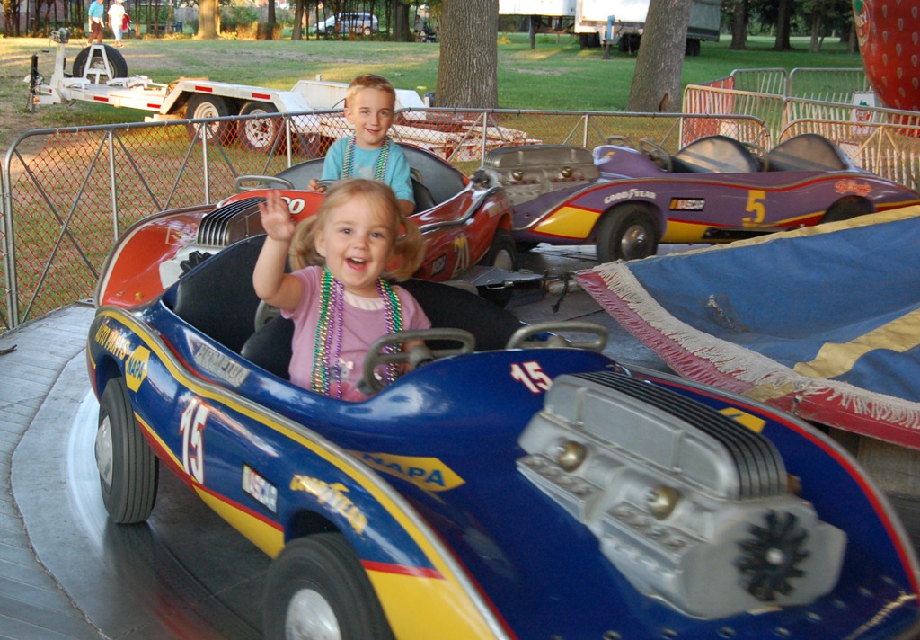 Today the kids and I headed to the Lakeshore Mardi Gras, for some rides and fun. There weren’t many rides, but the kids really enjoyed it. While there we saw Nana and Papa, Violet even roped Papa to go on a ride with her.
