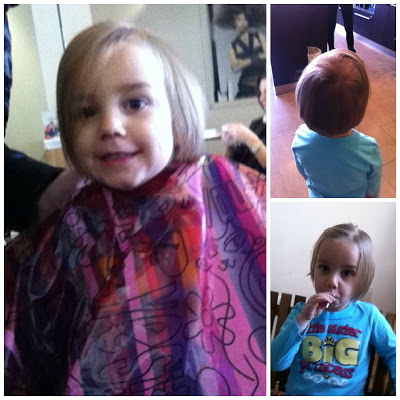 As you saw yesterday my little ones decided to play hair dress. So last night Jacob had a trip to the Papa Barber shop. Today it was Violet’s turn. Mommy took her down to the local hair salon. After a little convincing she sat in the chair and held still while the hair dresser did what she could with what was there.