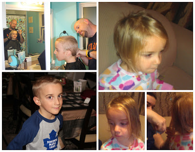 Today our little ones reminded us, that when they are playing together and it get’s two quiet it might not be a good thing. You see they decided to play hair dresser with real scissors. They took turns cutting each others hair, I’m not sure who thought of the ‘game’ but they took turns cutting each others hair. Of course the cuts to Violet’s hair were more shocking than the few to Jacobs, but both kids had hair that was close to the scalp. Limiting our options for fixing it. For Jacob we got Papa to give him a buzz cut, for Violet Melissa did a bit to make it look a little better, but we’ll be taking her to a hair salon to see if they can fix it. You can expect to see another picture of Violet’s hair tomorrow.