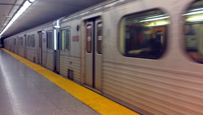 Today after work I met up with Melissa on the TTC, for some reason while I was waiting for her I snapped a few pictures of subway trains. What I didn’t expect was what I found when I looked at them when I got home. Can you recognize my blurry surprise?