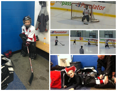 Today at hockey was Jacob’s turn between the pipes. I would like to say my little guy had himself a shutout, but between his lake of experience as a goalie and his team playing short-handed on both lines, it was far from a shutout. It was a good game though, he tried hard the entire game, paid attention to the play and tried to stay with the puck as it went behind the net. He wasn’t always fast enough, but he tried. It’s the biggest improvement in his game this year, he seems to try for the entire game, even when it’s not going his way.
