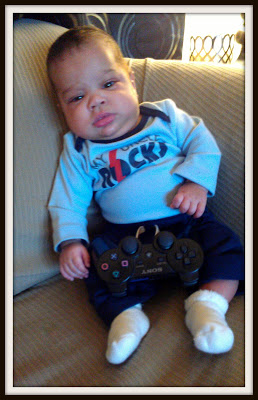Tonight Melissa and Violet headed out to the theater with Nana and Aunty Suzanne to see the Wizard of OZ. So Jacob and I spent the evening hanging with Nate. As I was pretty sure this was the little guys first boys night, I made sure that he had a turn on the Playstation. As you can see in today’s picture of the day, he hasn’t quite got the hang of holding the controller.