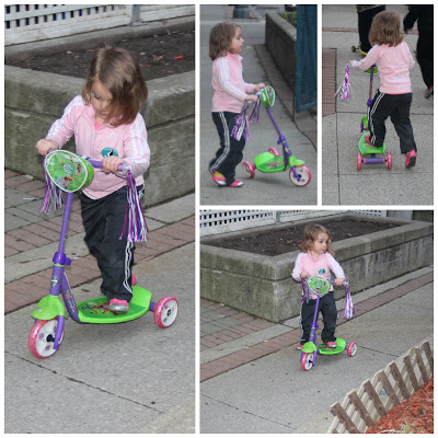 With the temperature starting to actually feel like spring, this evening while Melissa and Jacob were out, I decided it was time to pull out Violet’s new scooter. She was so excited helping me put it together. It was great fun watching ride it for the first time.