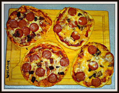 With Melissa working tonight, I thought it would be fun for me and the kids to make mini pizzas for dinner. I keep trying to get the kids to have more topping on their pizzas. Usually they just want Pepperoni, tonight I manage to get them to add bacon. Next I’ll try to add some vegetables.