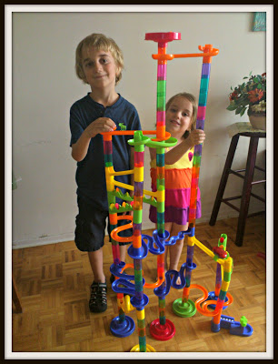 Today we have a picture of Jacob and Violet posing with a structure they built at their Nan’s house with Jacob’s old Marble set. The two of the seem very proud of what they built. .