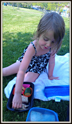 Today Violet and I took our lunch in the big park. I was there for the sun, Violet was there for the water park that opened this week.