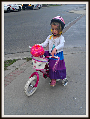 Today I took a picture of Violet riding her little bike to the big park, I think it might be time to invest in a new helmet for my little girl.
