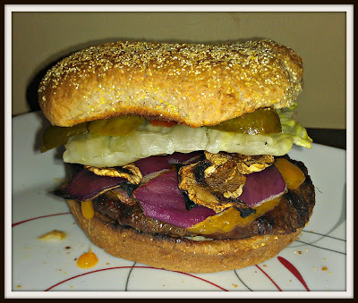 Yesterday I used a picture of the KFC Double Down as my picture of the day. Today I thought I’d use something I made for myself. This is the burger I made for myself this afternoon. What you’re seeing is a 5oz paddy from European Meats with cheddar cheese, grilled mushrooms and onions, with lettuce and pickles.