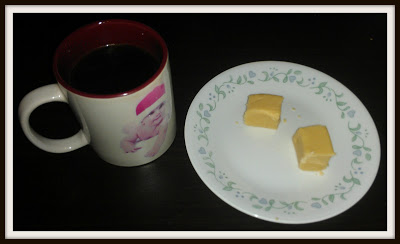 Today Melissa made a special treat. She made fudge, so after dinner I sat down with a fresh cup of coffee and enjoyed a few squares.
