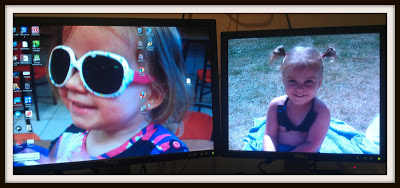 This morning when I booted in my computer at work I was greeted with these to pictures. It brought a smile to see these two cute pictures of Violet. I so rarely see my computer’s desktop that I forgot I had set it to change randomly throughout the day.