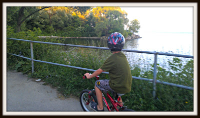 After dinner today me and the kids headed out for a little ride. Jacob rode his bike and Violet rode in the trailer. We headed to Marie Curtis Park where the kids played for a bit before we road home along the lake. I really enjoyed riding with Jacob and it’s amazing to see how much better he’s gotten in the last three weeks (POD:Learning to Ride).