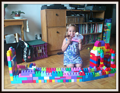 While I was at work today my mom sent me this picture of Violet and her Lego creation. She looks so proud posing with it and holding up her little doll.