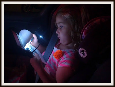 I captured this picture of Violet using my book light to light her colouring as we came home from seeing mommy tonight. She just didn’t want to stop and the dark wasn’t going to stop her.