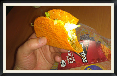 Today on the way home from the baseball game I walked pas a Taco Bell with a line in front of it. At 10pm this didn’t seem normal so I checked it out and found them giving out free samples of the new Doritos Locos Tacos. I must say they are quite taste.