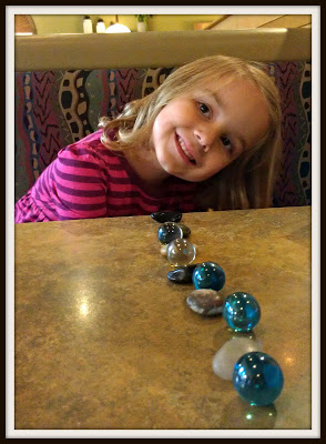 Today Jacob headed out with his Uncle Jim to Lego Land, leaving the afternoon for Violet and I to go visit Melissa. After spending a great afternoon together I thought it would be nice to take Violet out for a Father Daughter dinner. I took this picture of Violet while she was showing off her treasures from Melissa.