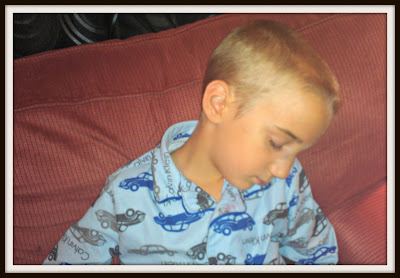 Tonight after bedtime Jacob came down complaining he couldn’t fall asleep. He wanted to stay down stairs with me and watch baseball. I told him he could watch the rest of the inning with me. He was asleep before the inning was over, so I took a picture before carrying him up to bed.