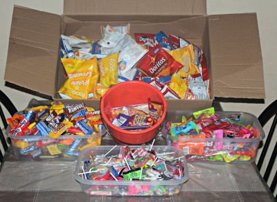 I couldn’t post about tonight without including a picture of all the candy the kids got: