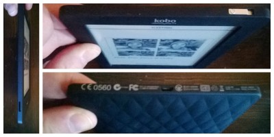 The Kobo Touch is a light weight and easy to use E-Book reader. It’s e-ink screen is easy to read. Over the last year I’ve used it almost daily. The device has limited physical buttons and ports. There is a Home button on the front, a power toggle on the top edge. The left edge has a small port for a Micro SD card (I’ve never found the need for one) and the bottom edge has the USB port for transferring books from a computer and charging. The back is a quilted and almost soft to touch. I remember when I first held it being surprised by how thin and light it was. Of course once it’s in it’s case it looses most of that.