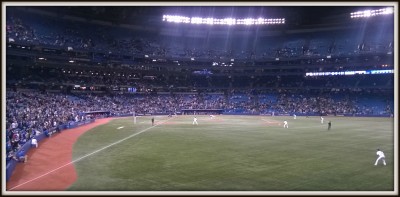 Today I headed out to watch my Fifth game of the season, but instead of standing in the 200 level outfield we sat in the 100 level. Sure it was still in the outfield but we were second row above the Phillies Bullpen and the crowd was loud. It was a great game, the Jays completed the 4 game sweep (two in Philadelphia and two here) of the Phillies.