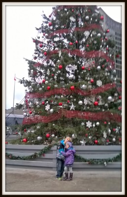 Today we have a picture of Jacob and Violet taken during their outing with their Nan. After church they headed down town to check out the Christmas decorations around Nathan Phillips Square and the downtown. Today’s picture of the day is of them standing in front of Toronto’s official Christmas tree.