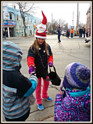 Today was the Lakeshore Santa Clause Parade. I didn’t think we’d actually see it today, but the kids really wanted to so when went an walked along the parade route. Parades are much faster when you walk towards the beginning. Today’s Picture of the day is of the kids getting candy cans from a parade elf.