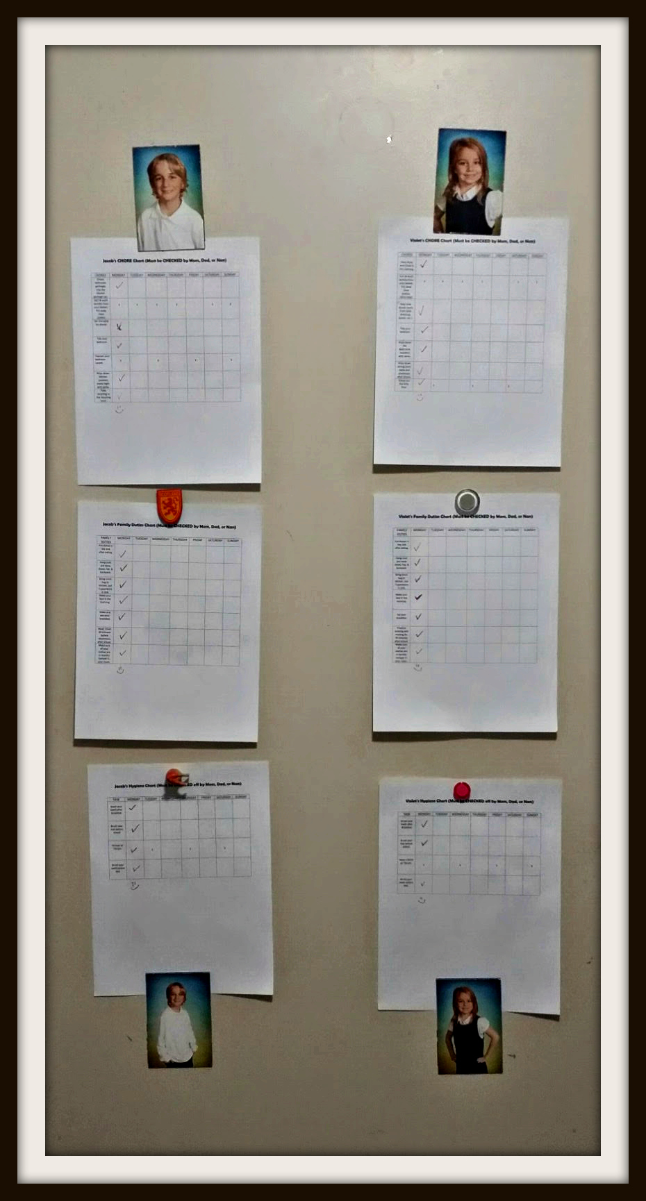 POD: Chore Charts Posted on March 2, 2015by mrjCategories:Family, Fatherhood, Picture of the Day Today we have a picture of the kids knew chore charts. I love how excited they get to do their chores. Of course I do wonder how long that will last. Share this: Click to share on Facebook (Opens in new window) Facebook Click to share on X (Opens in new window) X Like this:Like Loading... Related mrj www.geekwithkids.com