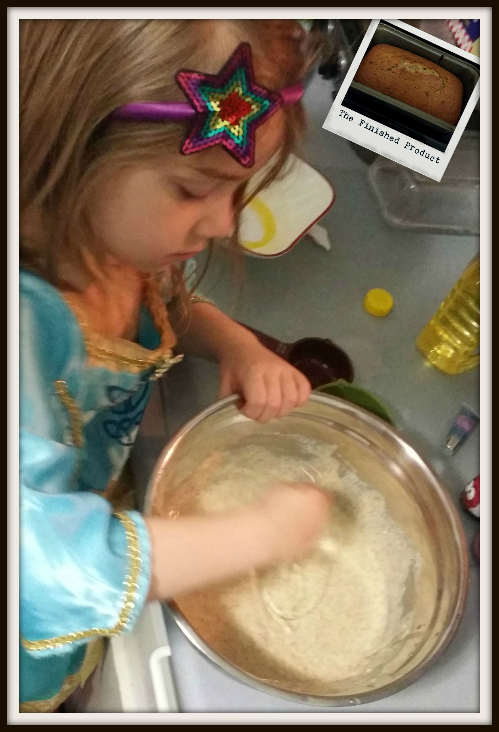 This morning while Melissa worked Violet and I did some baking. Usually it’s Melissa who bakes with the kids, but this morning I was inspired to make some Banana Bread. We don’t need to talk about how it was a Robin Hood Quick Bread Mix.