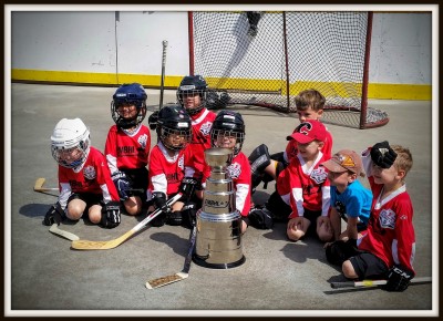 Today was the final day for Violet’s ball hockey. The 10 weeks have just flown by. Violet’s age group was more about skills development the games, so there was no Champions, but each team got to pose with the EMBHL Trophy. I wonder where they inspiration for the trophy design came from.