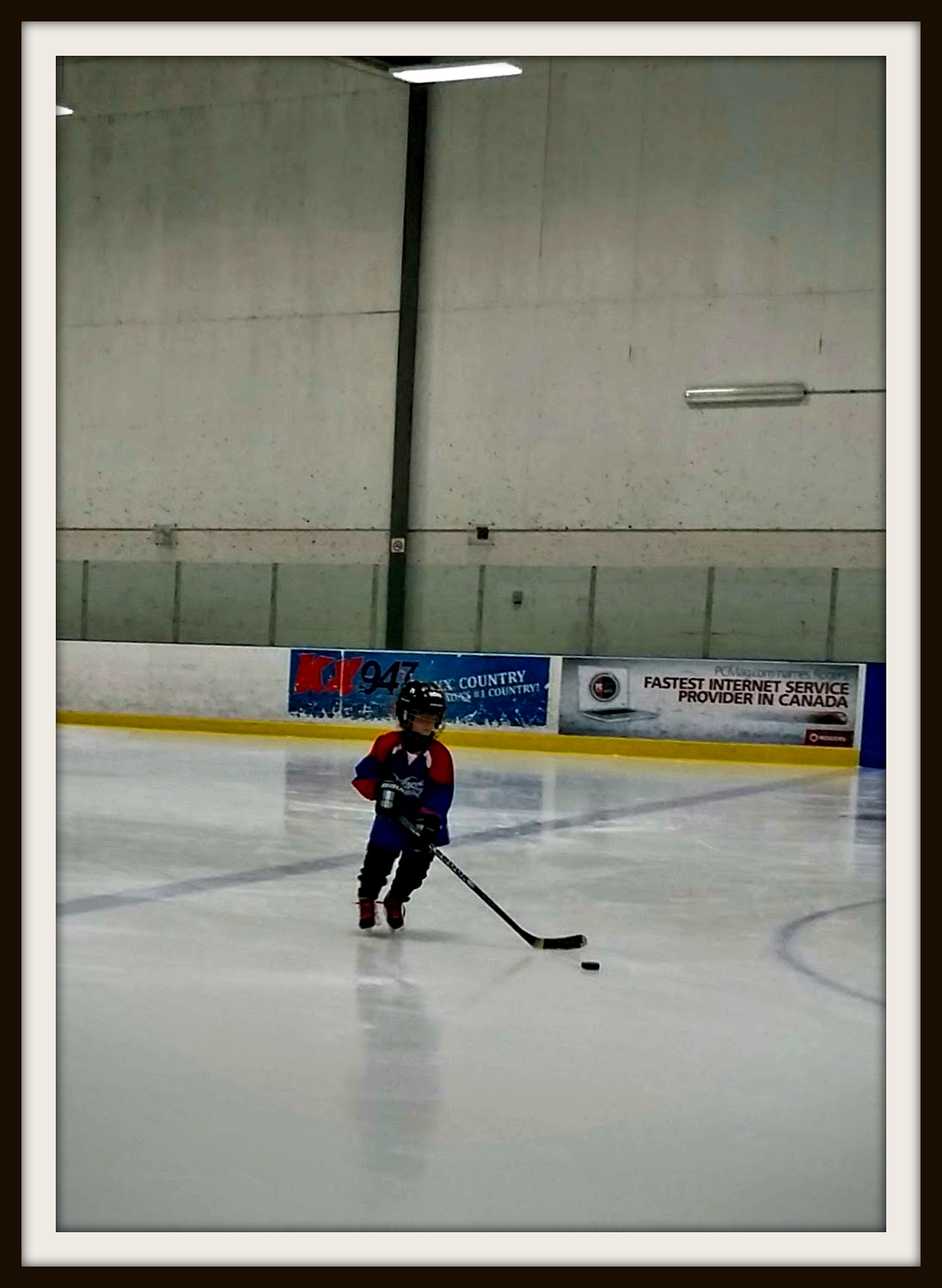 Today we have another picture from Violet’s 3 on 3 hockey. This time we have her taking the puck down the ice before she scored her first goal of the 3 on 3 season. She was so excited that he’d finally managed to get a puck through to the back of the net.
