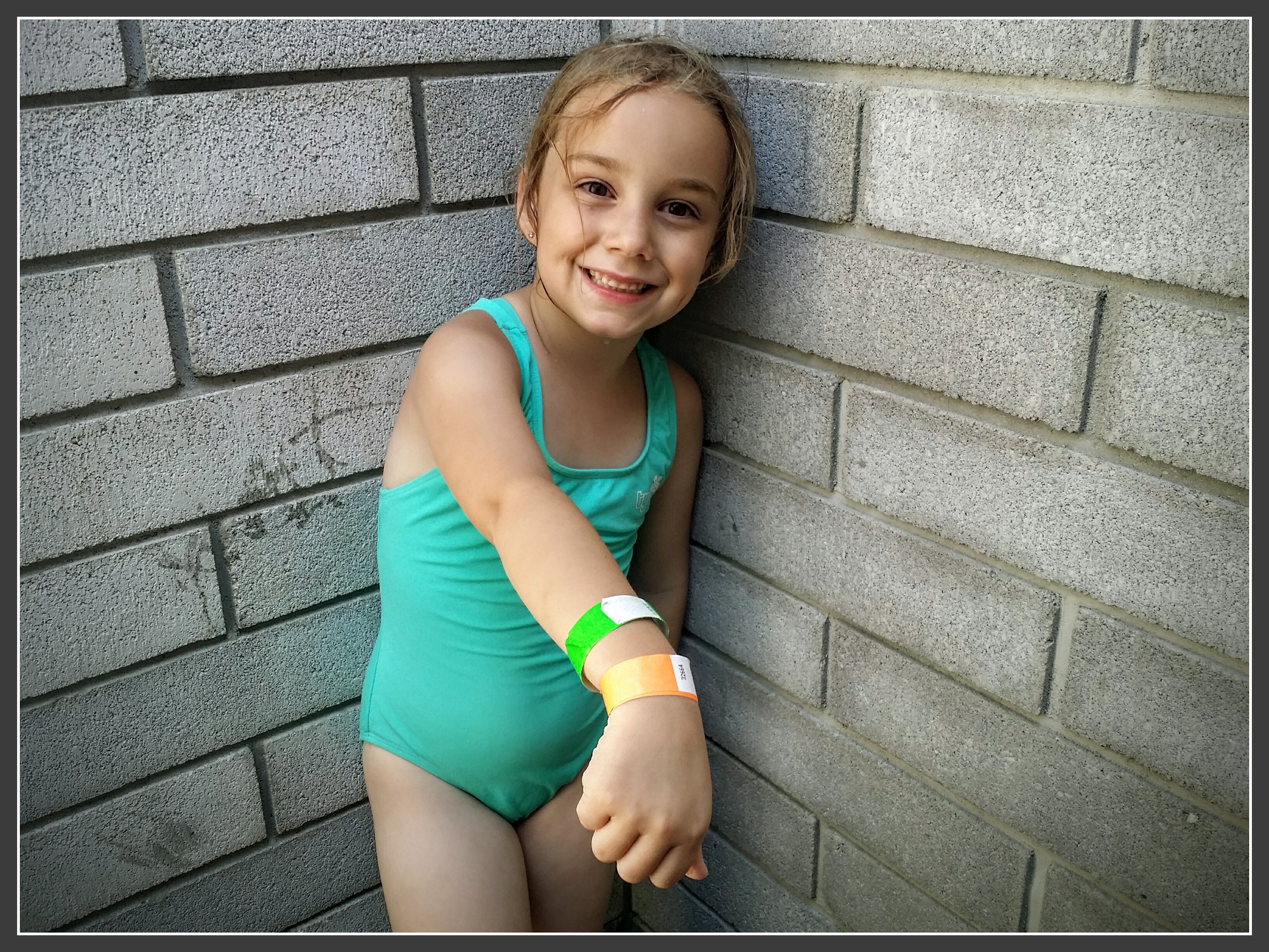 Today I headed to the local outdoor pool with the kids for some swimming fun. After swimming around a bit it Jacob insisted that we shouldn’t leave till Violet had at least tried the deep end test. Violet wasn’t interested in going to the deep end, but agreed to do the test. A test she passed, even with the addition of a minute treading water.  Of course after that we spent most of our time in the deep end. I was so proud of her. of course I’m also amused by the fact that though I have the freedom to head to the deep end I don’t think I could past the tests the kids have to.
