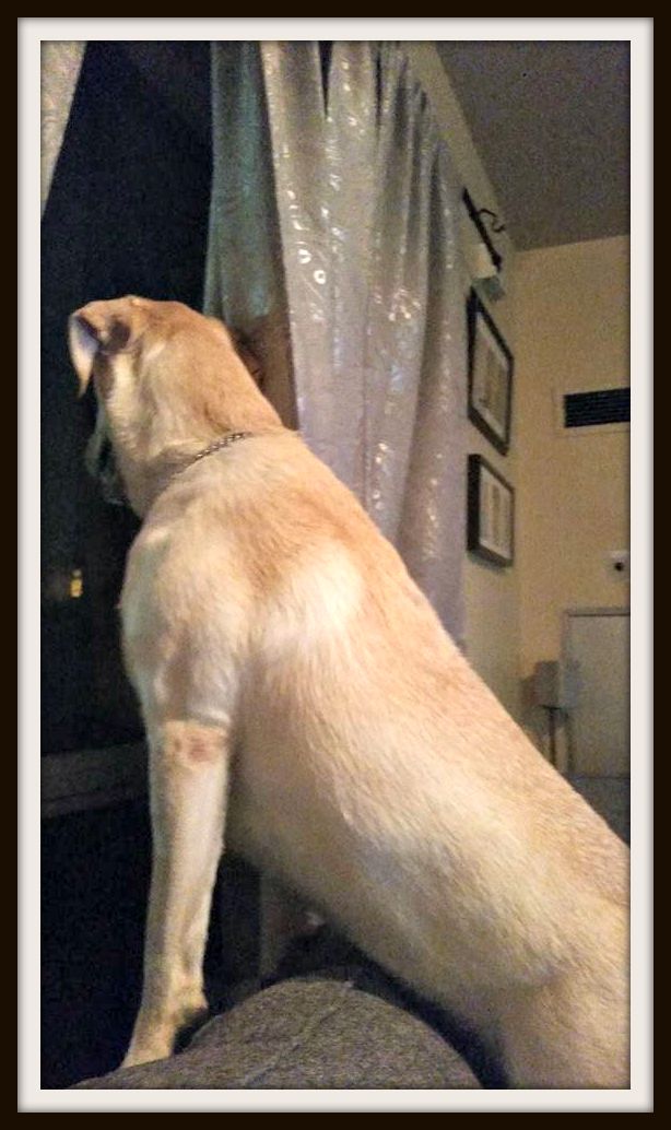 Ruby and I have an evening routine, as the night winds down we head out to the park to play some catch before heading for a long evening walk. Tonight I headed out without her. While I was gone Melissa snapped today’s picture of the day of Ruby looking for me. I’m sure she was wondering why I didn’t take her with me.