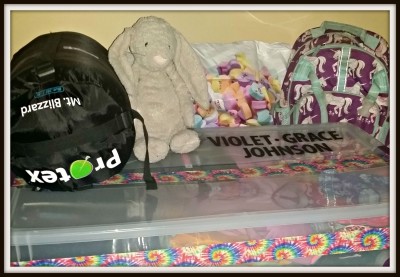 Tomorrow my little girl heads off to a few days of overnight camp. Part of me wishes that she wasn’t growing up so fast. Of course a larger part is thrilled to see her grow and experience new things. So today I have a picture of all her stuff packed up and waiting to head to camp in the morning.