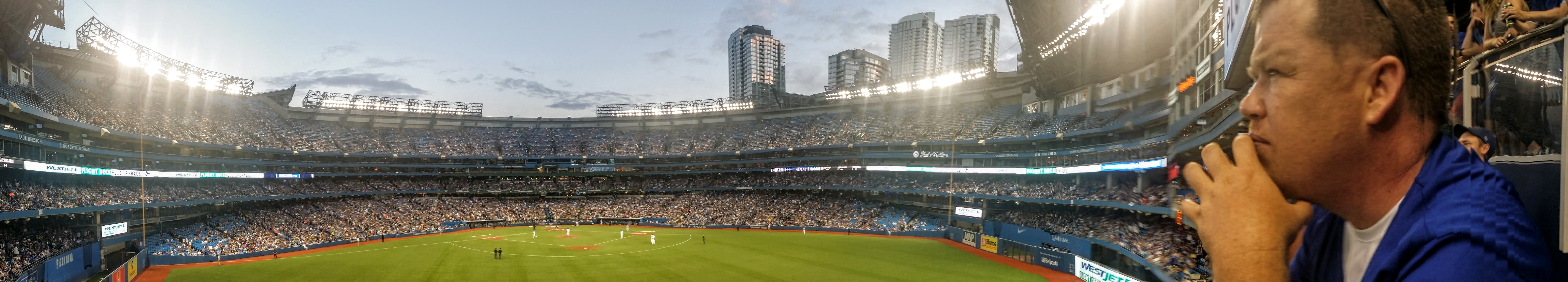 Today I have a panorama from the Jays game. It’s amazing how many people where there for a Tuesday night game. Between the players the team picked up at the trade deadline and the 9 game winning streak the excitement around the Jays is something not seen in this town for over 20 years.