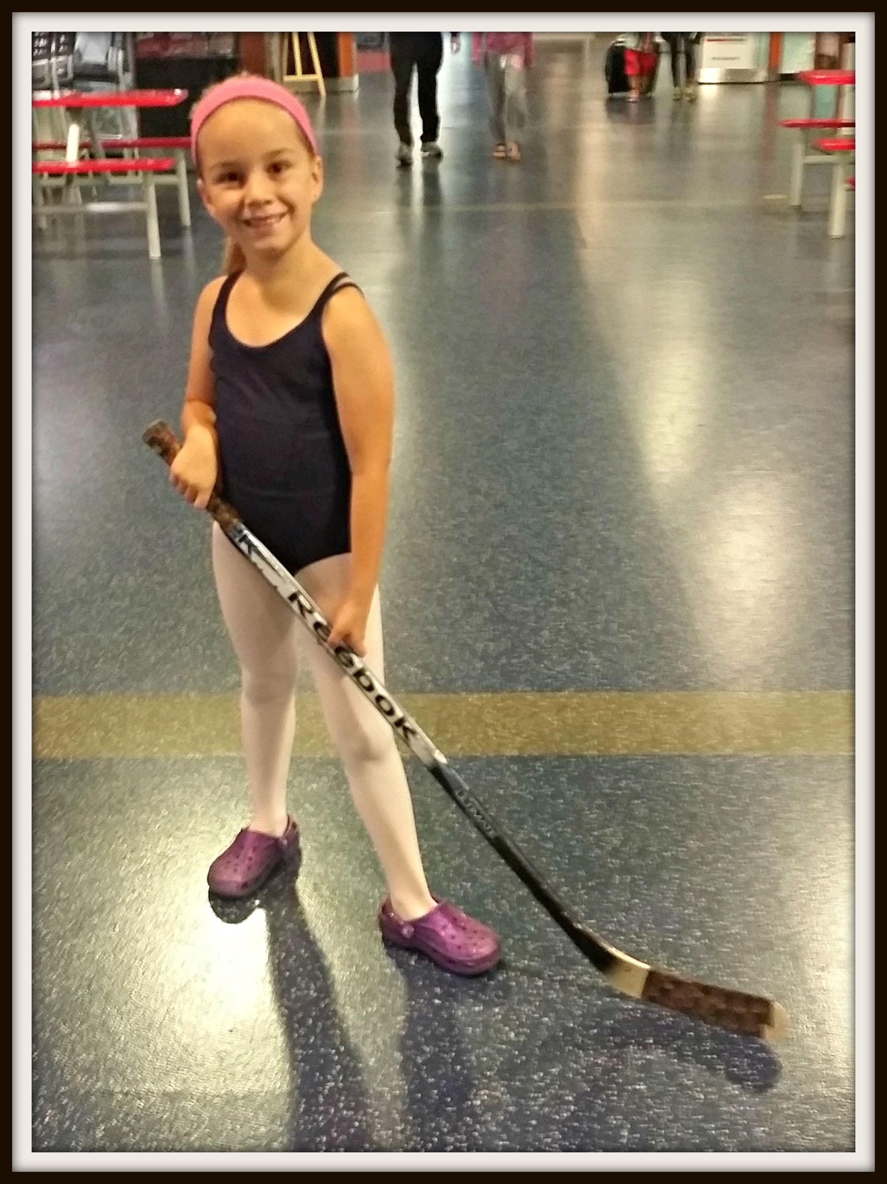 As the we continue to gear up for the fall season of activities we’re seeing more and more overlap. Today we had Hockey then Dance, usually we’ll be going the other way round. I couldn’t help but snap this picture as we headed out of the arena.