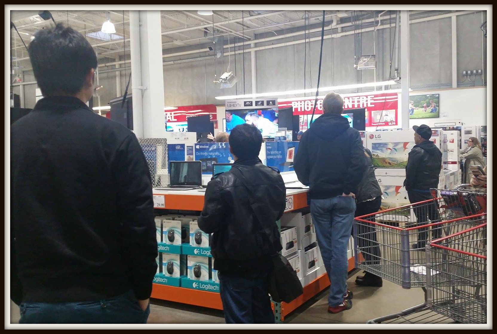 I captured to day’s picture of the day while wandering around Costco It seems I wasn’t the only wanting to watch the Blue Jays in the 5th game of the American League Championship series. I’m happy to say that they won forcing a game 6 in Kansas on Friday.